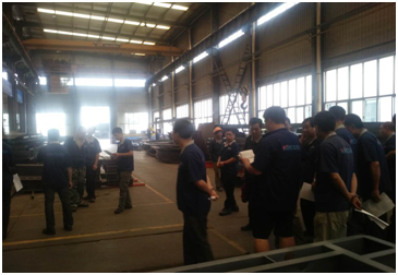 講解完畢后為了讓參與培訓的人員明白如何進行危險源辨識和風險如何分級,安全員傅偉組織現(xiàn)場人員在2號車間針對生產現(xiàn)場進行了危險源如何辨識及風險分級的示范和講解,讓與會人員明白了危險源辨識的程序和做法,知道了如何去做。